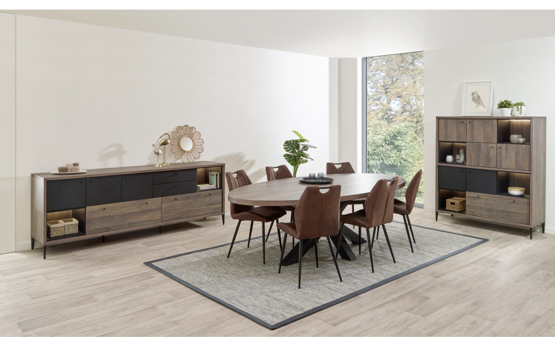 Dressoir Programme Trevi Disponible dans 2 dimensions: 238 ou 197 cm Référence teinte: K675Z Golden Oak + Elegant Black Délai de commande +- 6-8 semaines Pour tout devis n'hésitez pas à nous contacter ! Ce programme est présenté dans votre magasin Promo Meubles.