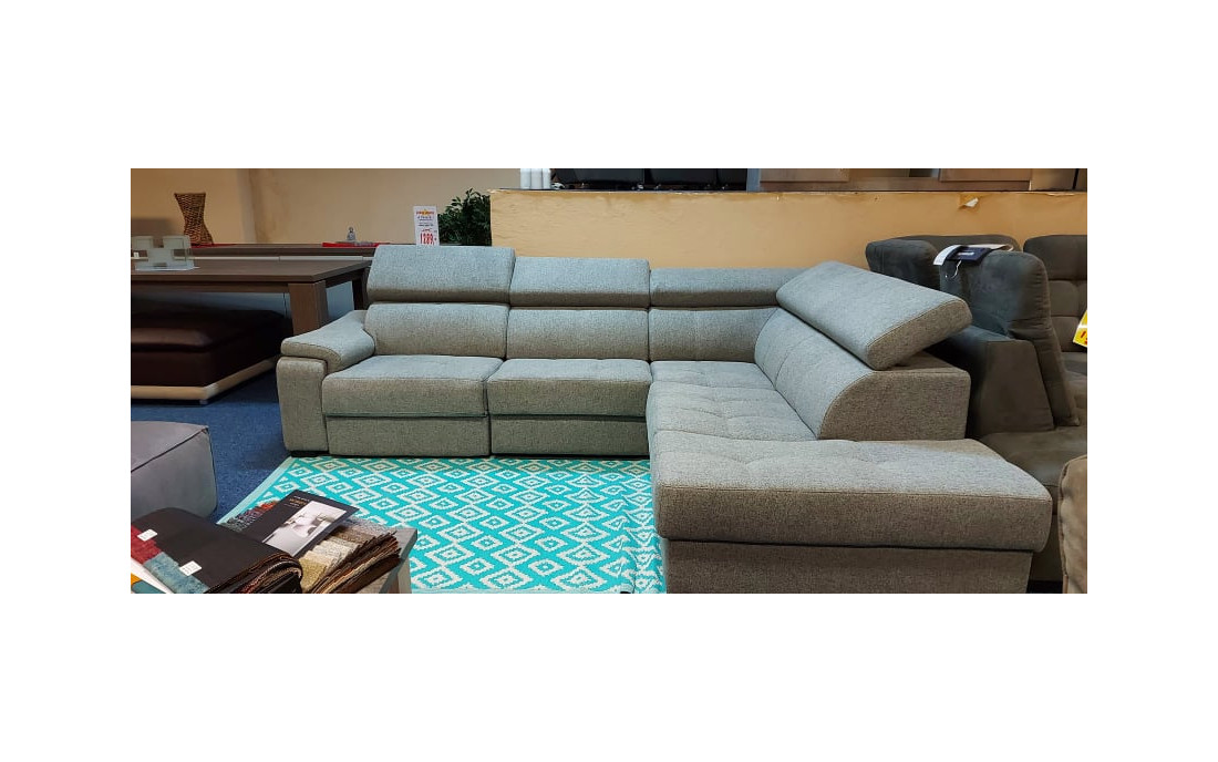 Ce canapé d'angle est présenté dans votre magasin de salons Promo Meubles à Charleroi.