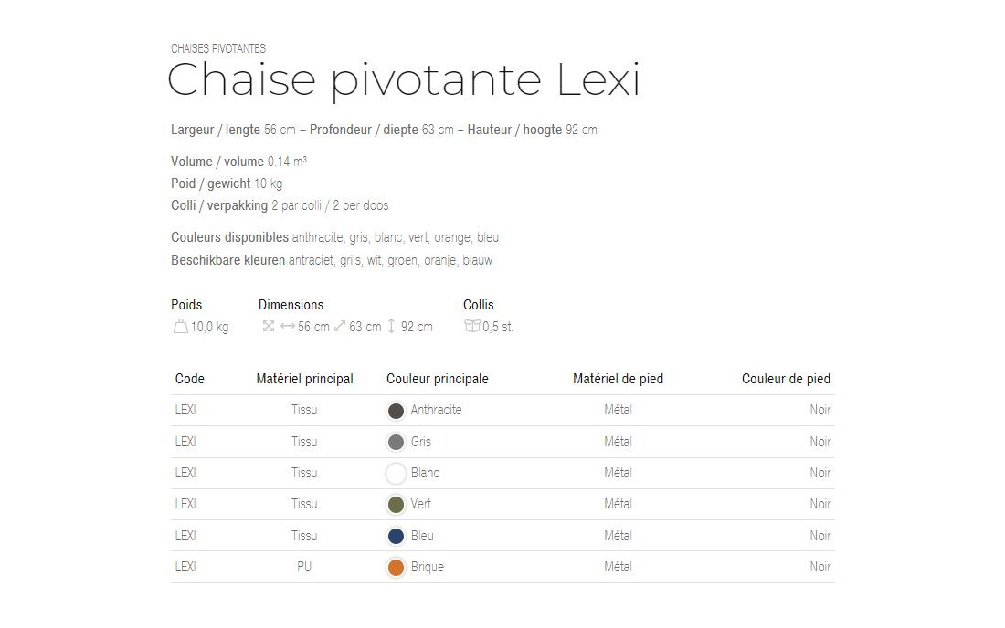 Votre chaise est visible sur catalogue dans votre magasin de meubles Promo Meubles à Charleroi.